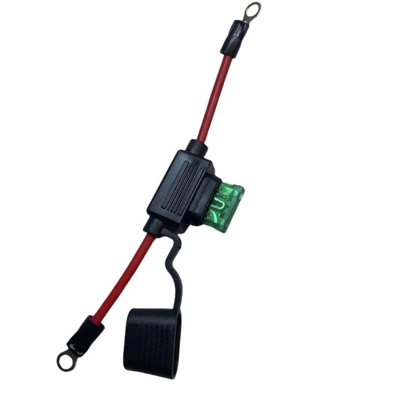 Sikringsholder in line incl. 30 Amp sikring og ø 5 mm kabelsko.